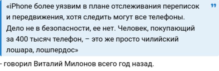 При этом россиян Милонов призвал покупать смартфоны не в «пафосных салонах», а в комиссионных магазинах, не ориентируясь на марку. Милонов убежден, что именно туда иностранцы сдают свои телефоны, продавая их за полцены, чтобы «купить билеты в Мариинский театр или на Надежду Кадышеву».