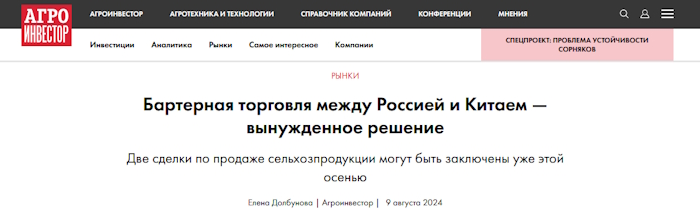 Бартерная торговля между Россией и Китаем — вынужденное решение