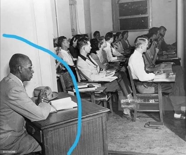 Джордж МакЛорин, первый темнокожий мужчина, поступивший в Университет Оклахомы в 1948 году, был вынужден сидеть в углу вдали от своих белых одноклассников.