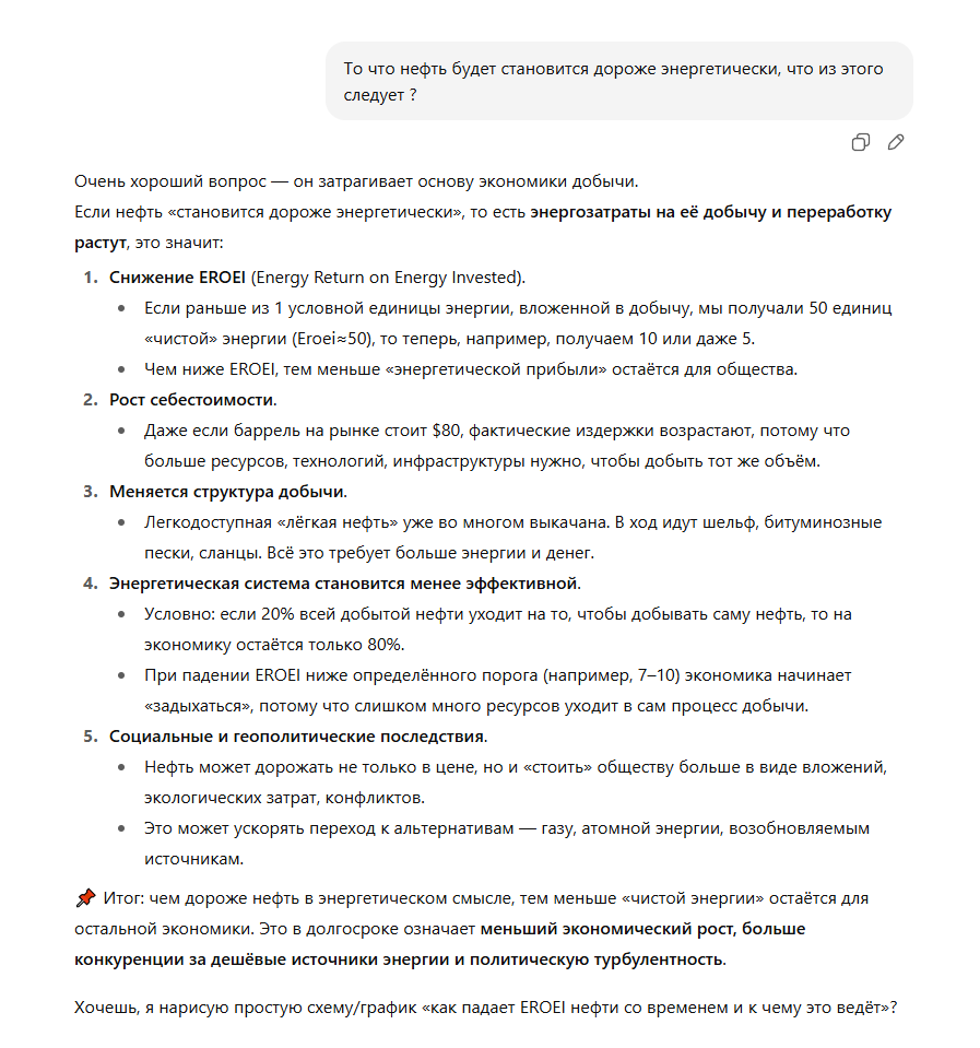Ваш ии подтвердил мой тезис: переход от удорожания нефти к развалу на технологических кластеры требует еще шагов в логике. Мой вывод от меня был. :)