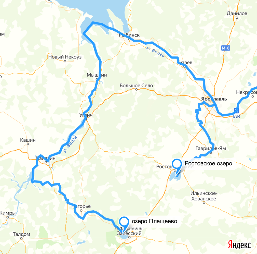 Рис.6. Водные маршруты из Волги и Плещеева озера в Ростовское озеро.