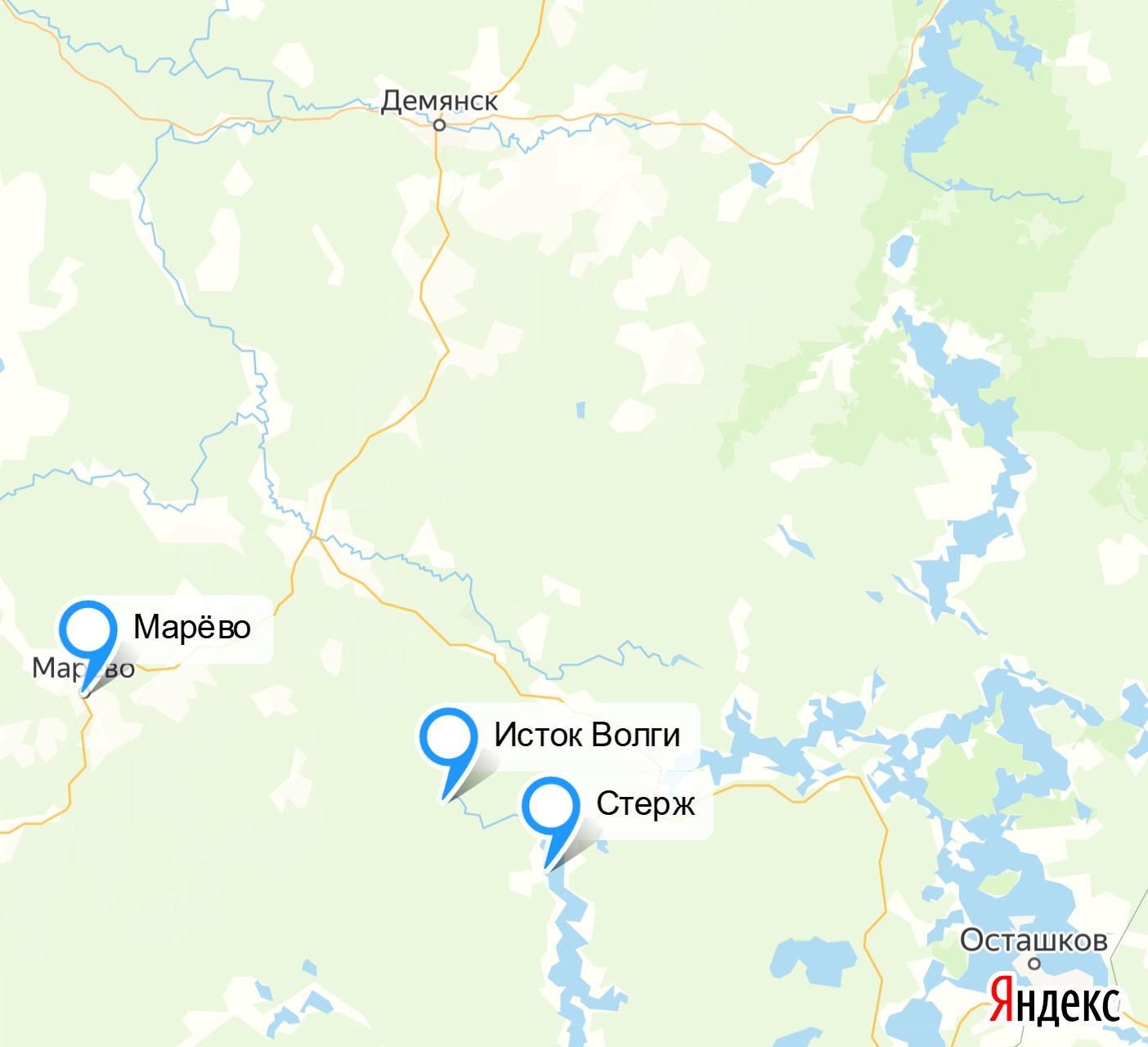 Рис.3. Исток Волги на современной карте (2).