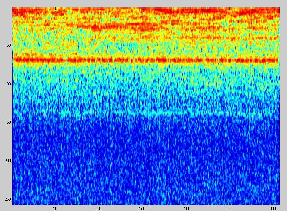 Если мы сделаем срез спектральной картинки в любой временной точке, то спектр будет выглядеть примерно так.