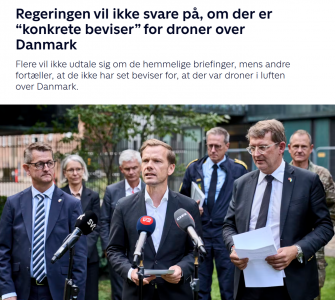 8 октября датское СМИ TV2 публикует схожую статью на тему: «Правительство не будет отвечать на вопросы о том, есть ли “конкретные доказательства” присутствия беспилотных летательных аппаратов над Данией».
