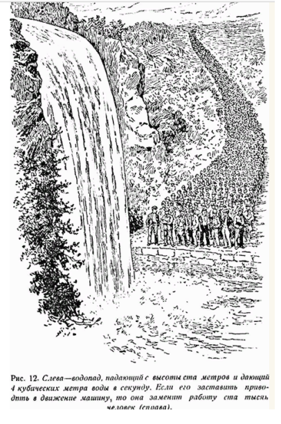 А главное,— они несравненно сильнее рабочих: какой-нибудь небольшой водопад может с успехом заменить работу сотни тысяч человек (рис. 12)!