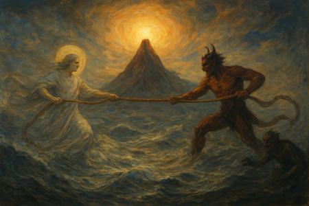 В ней бог и демон сидят за одним столом, и пахтание продолжается,