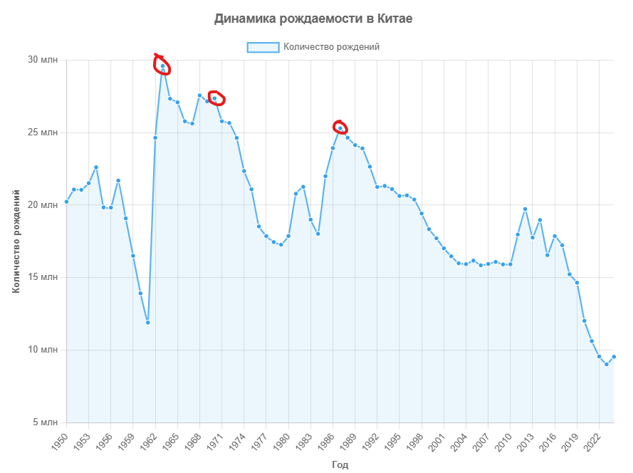Наложите график рождаемости на график политических и социально/экономических потрясений/кризисов в Китае и вы увидите, что они находятся в корреляции.