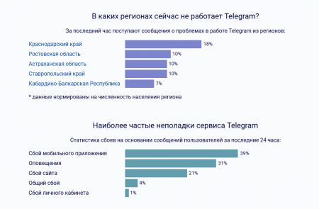 В основном Краснодарский край и Ростовская область. Типичное проявление - на телефоне приложение еще запускается, на ПК нет. Сообщается, что у многих пользователей недоступен и сайт telegram.org, что говорит о блокировке со стороны провайдера.