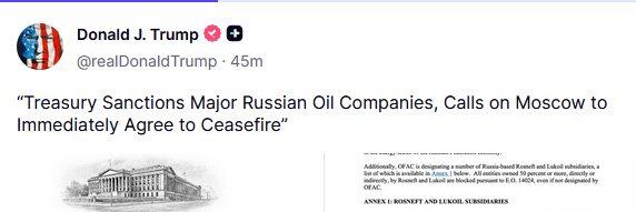«Министерство финансов вводит санкции против крупных российских нефтяных компаний и призывает Москву немедленно согласиться на прекращение огня»