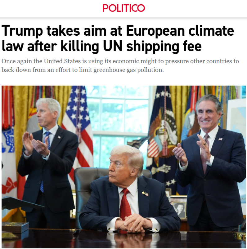 Politico: Кампания администрации Трампа по отмене первой в мире глобальной платы на выбросы углерода для судоходства во вторник перечеркнула внутренние дискуссии ЕС по климату после того, как Греция не позволила блоку повторно одобрить спорный сбор.