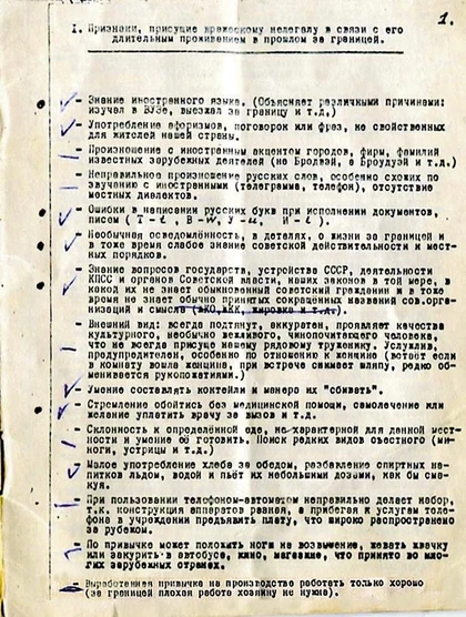 Во втором комментарии я привёл скан методички по выявлению засланных агентов по признаку "работает ответственно, чем выделяется среди местных".