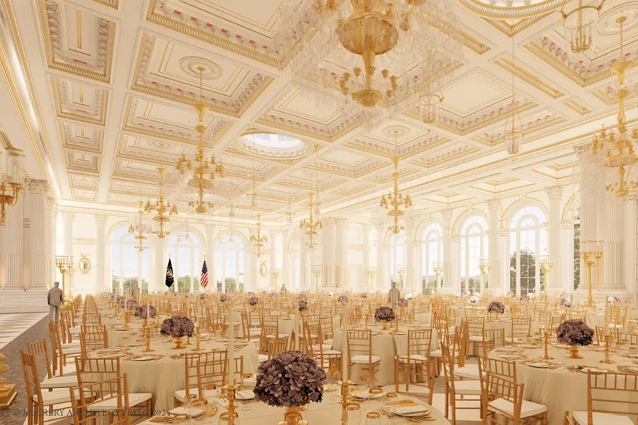 Да ладно уж...Мистер Трумп решил,что маленький зал для приемов на 200 чел в отдельном Восточном крыле БД - это несерьезно и он построит достойный в тоv-же стиле на 600-700 чел., и НЕ за счет бюджета.Так сказать - личный подарок Американскому Народу..Платят привлеченные богатеи и он сам. Пусть развлекается....