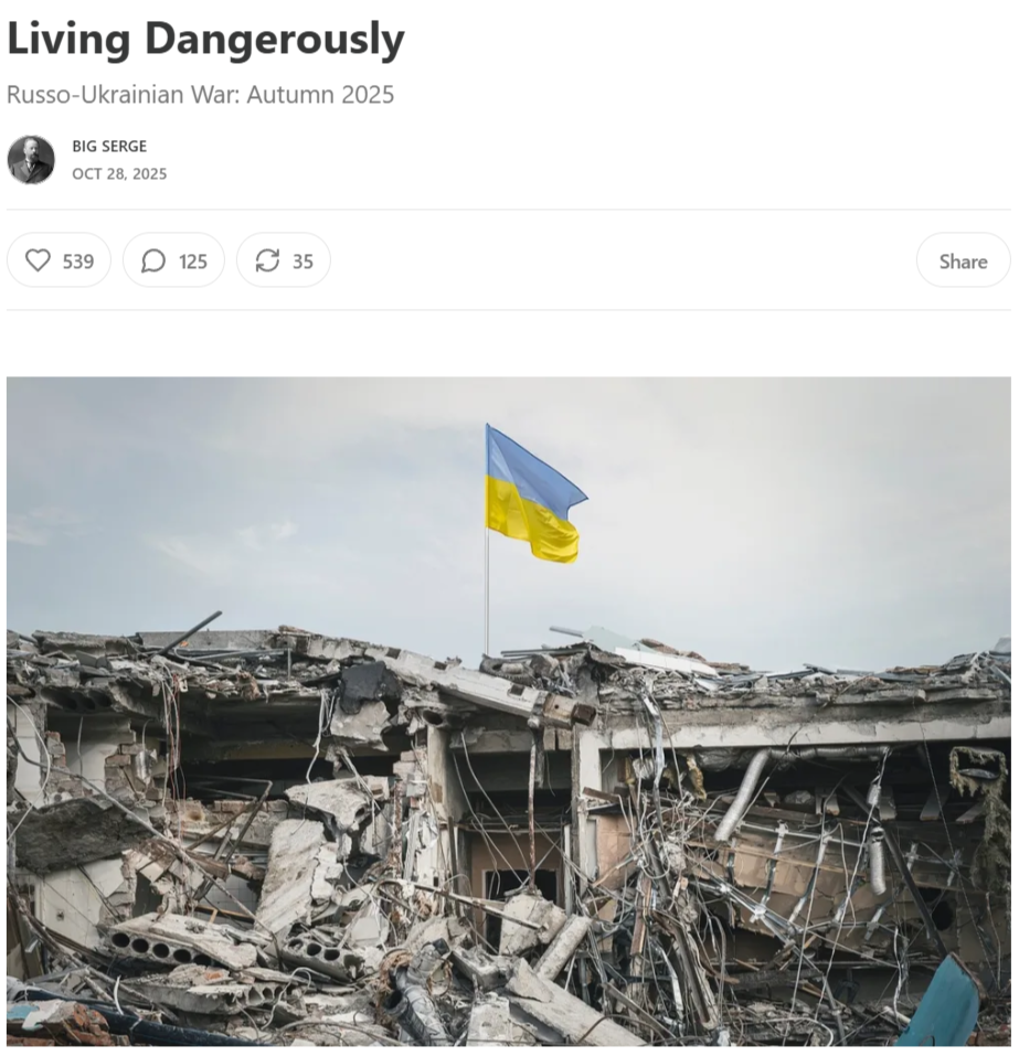 На Покровском фронте успехи России также трактуются неверно. После прорыва в конце лета российские войска консолидировали выступ к северу от Покровска (несмотря на недели украинских контратак) и уверенно продвигаются к Райскому и Сергеевке. Речь идёт вовсе не о Покровске — выход к Райскому выведет российские войска прямо в тыл Константиновки, на пути снабжения к нижней стороне Бананы.