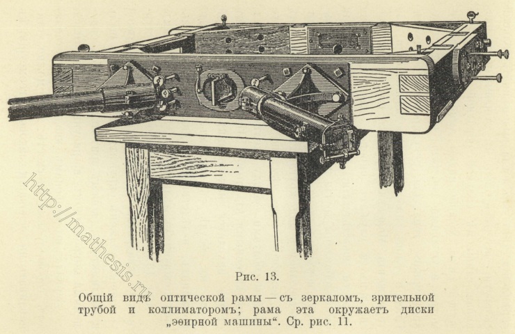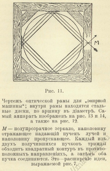 В своем эксперименте Лодж использовал кольцевой интерферометр. Зеркала были закреплены внутри деревянной рамы: