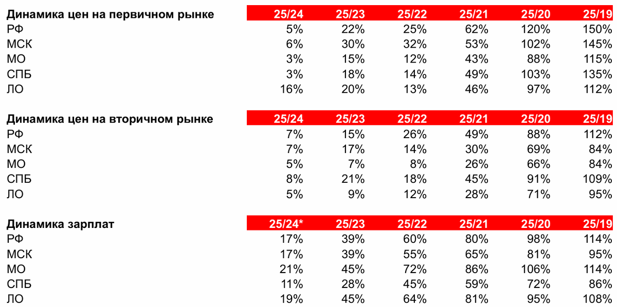 Ну где не отстаёт-то? Мск, как отчасти и Питер и ближние окрестности - не РФ, так что сравнивать только по РФ в целом... по вторичке - да идут ноздря в ноздрю, но ЗП тут-бы сравнивать не средний квиток а медианный (да и по недвиге-бы так-же), а вот по первичке тут просто в диком отрыве. Разумеется речь про сравнение на среднем периоде (2019-2025), т.к. мало кто приобретает недвигу как обычную покупку и расплата обычно растягивается на года/многие года
