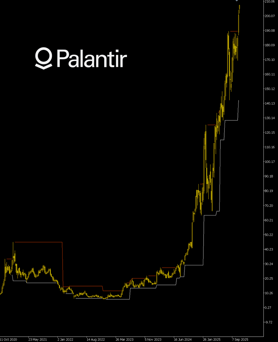 Palantir Technologies - американская компания, разработчик программного обеспечения анализа данных для организаций. Основные заказчики — военные структуры, спецслужбы, инвестиционные банки, хедж-фонды. С 2023 года акции компании росли почти безоткатно. И выросли на 3200%.