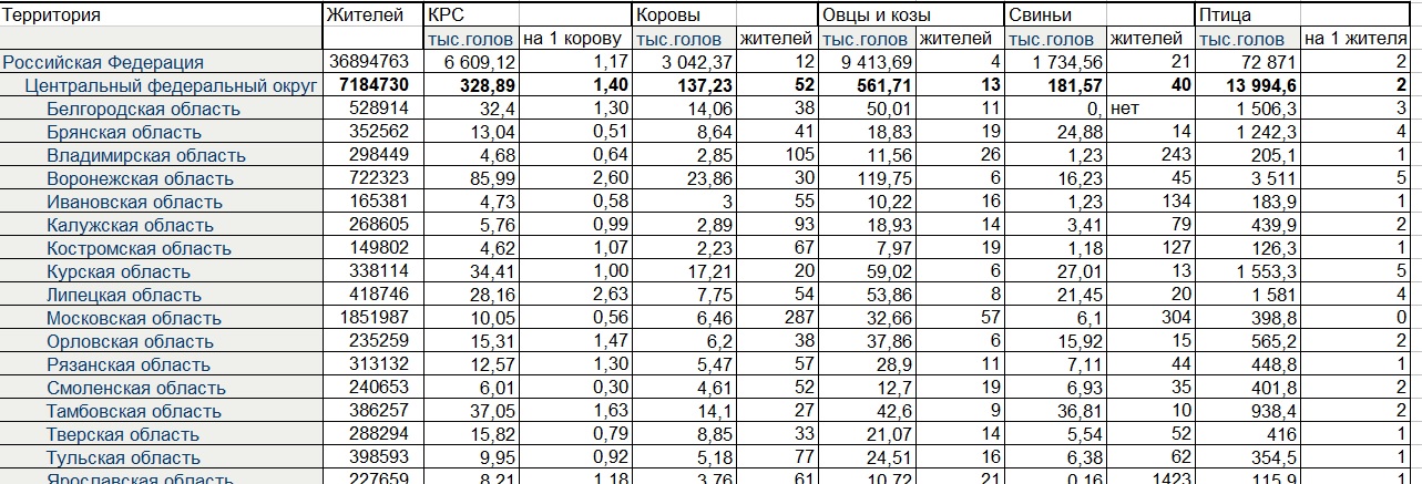 Думается, что т-щ выше хотел сказать, что много скотины просто не ставится на учёт ибо хлопотно это. А с учётом "для себя держат", получается в среднем несколько больше чем:
