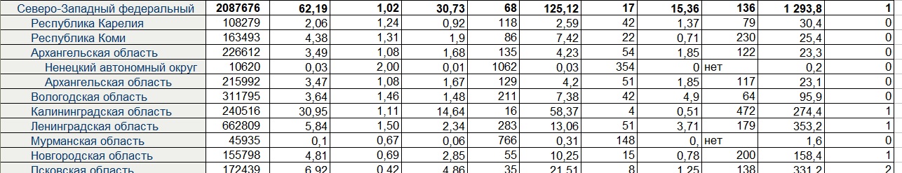 Семь регионов России свободны от свиней в личных хозяйствах. Ну ладно, Чечня, Ингушетия. Но ни одной личной свиньи в Белгородской области? Во Владимирской области одна свинья в личном хозяйстве на 243 сельских жителя. В Новгородской - на 200 сельских жителей, в Калининградской - на 473 сельских жителя, в Краснодарском крае - на 1800 сельских жителей.