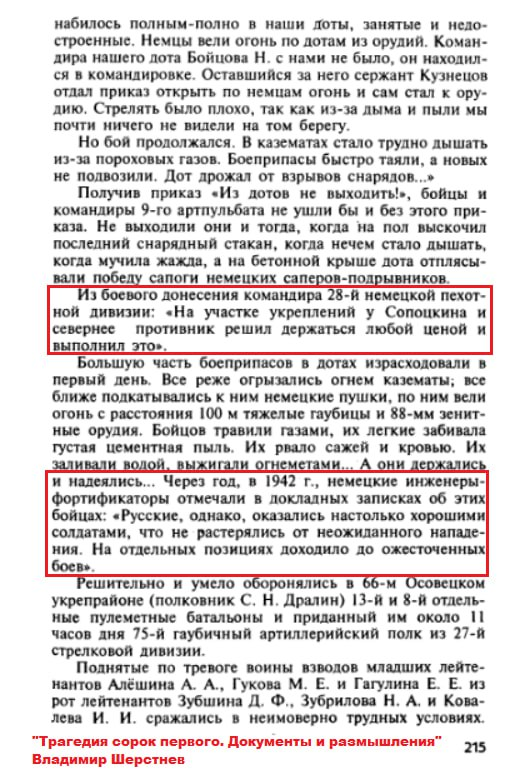 Насколько этот документ ценен и стоило ли цитировать из него хоть строчку, пусть решат читатели. Я лишь от себя отмечу, что ценность этих слов многократно выше как мемуаров, так и субъективных оценок автора. Немцы порой любили преувеличивать сопротивление и мощь советских укреплений, но личный героизм красноармейцев придумывать им точно не было нужды.