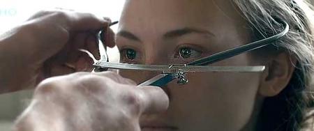 А дальше начинается полный ад для героини, которую заставляют снять платье и подвергнуться измерениям головы, рта и лица.