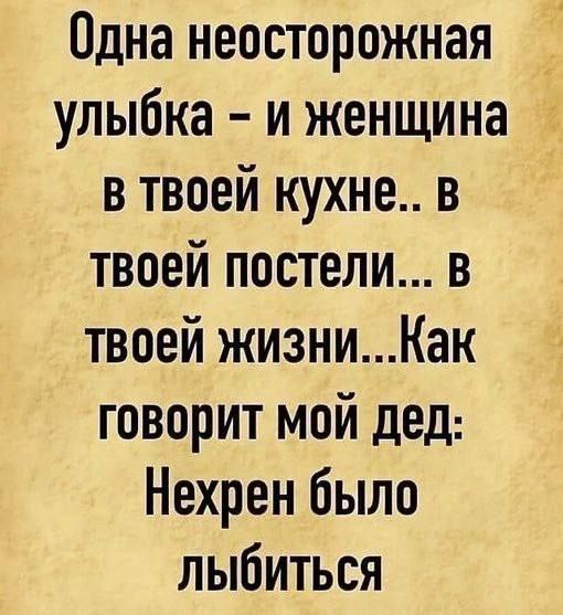 Едва уловимая полуулыбка -- и он уже скребёт половником в твоей кастрюле... путается в твоих полотенцах... блуждает в твоих трусах... укоренился в твоей жизни. Как успокаивала матушка: "Да наплюй, если не слюбится и жрёт много. Чей бы бычок не скакал, а телёночек-то наш, прокормим как-нибудь"