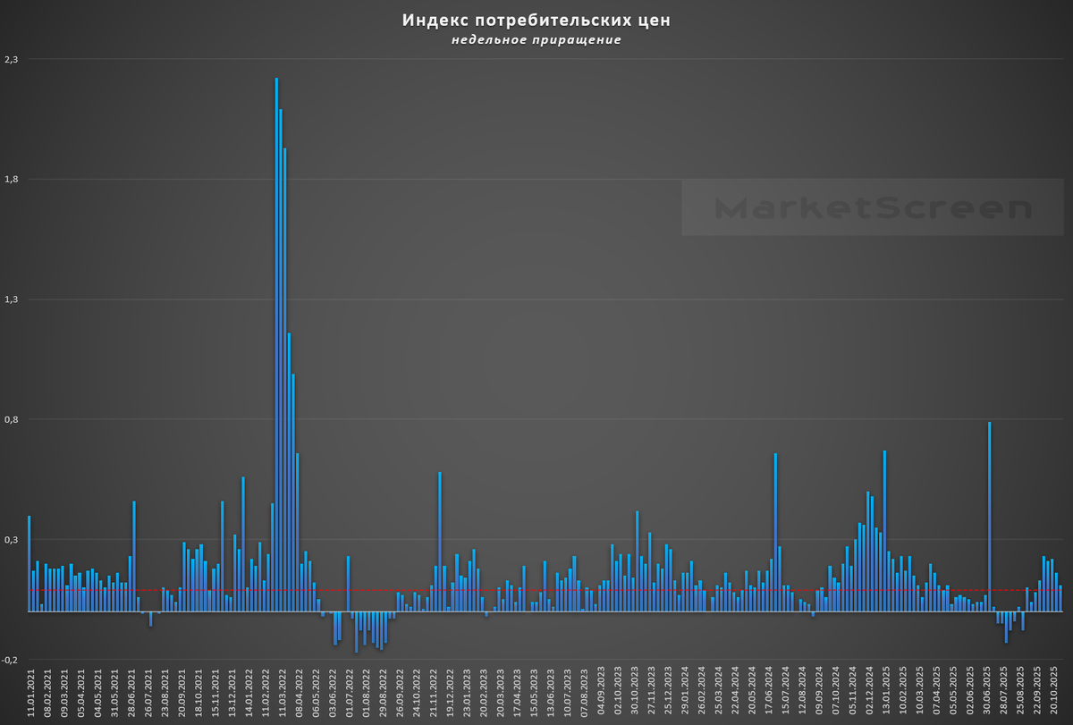 ИНФЛЯЦИЯ В РФ С 28 ОКТЯБРЯ ПО 5 НОЯБРЯ (ЗА 9 ДНЕЙ) ЗАМЕДЛИЛАСЬ ДО 0,11% С 0,16% НЕДЕЛЕЙ РАНЕЕ – РОССТАТ