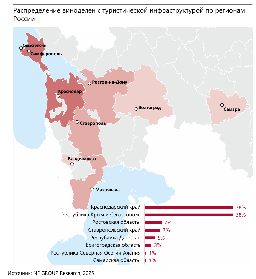 По состоянию на август 2025 в России насчитывается 284 винодельни.