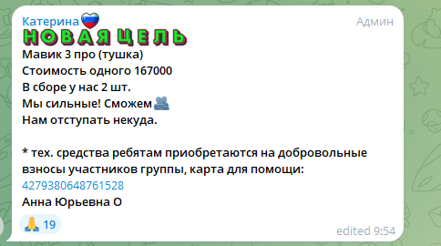 Не мавиками единым.... Неделю назад, радио рынок "Маяк" в Донецке. Мне предлагали по 5к руб за птицу фпв, комплектация - рама с двигателями, без акб, (акб не спрашивал, но ей цена 10ач - 5-10к руб), на фпв какой-то контроллер с разъёмом под батарею. А так - таки да, мавик-3, мавик-3 про, и мавик-3т - сильно разные птицы, и цена на них отличается кратно.