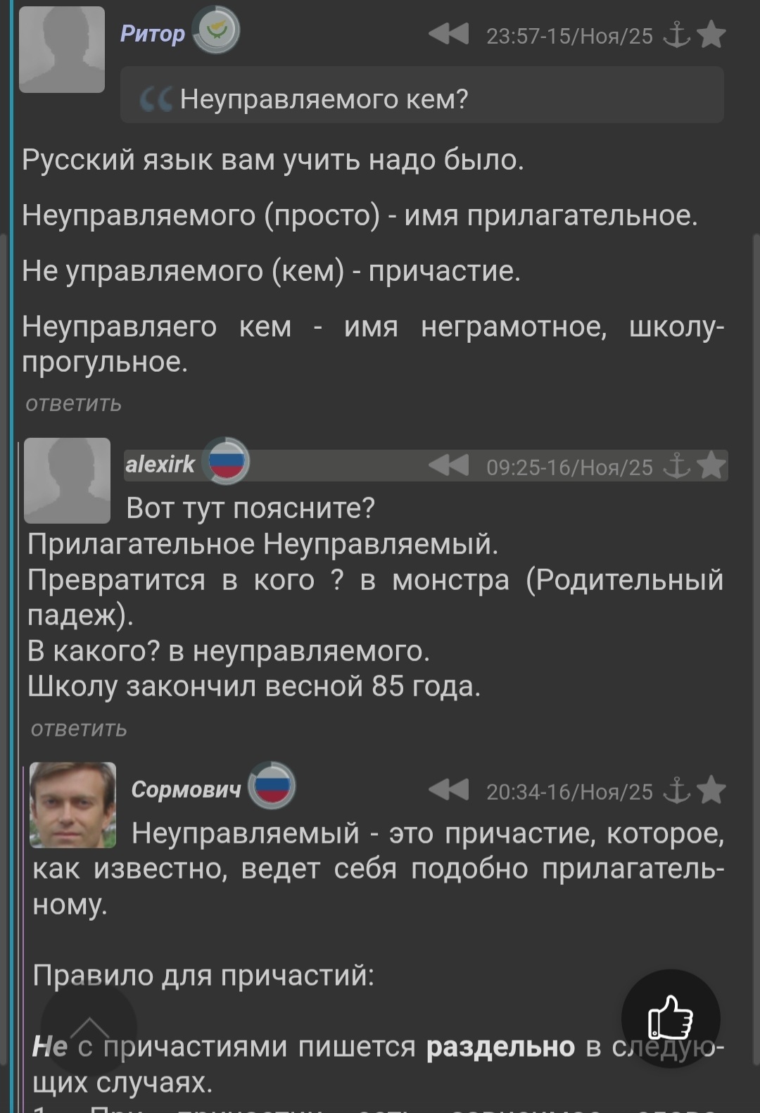 То у вас неуправляемый было только исключительно причастием, а теперь это "естественный переход между частями речи без изменения морфемного состава, но товарищ Ритор (который вам это подсказал) почему то не в курсе"!