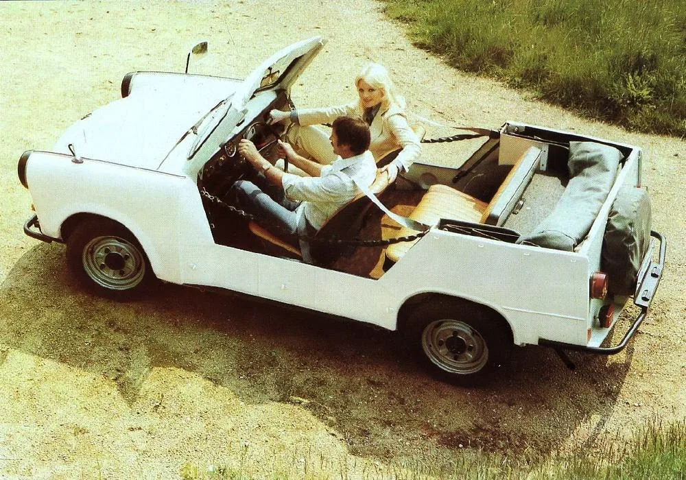 Кстати, в 1964 году как раз начался выпуск военной модификации машины для ННА ГДР (модель «Trabant-601/A» с упрощённым кузовом без боковых дверей и установленным на фары комплектом светомаскировочных устройств) и её гражданской версией — Trabant Tramp:
