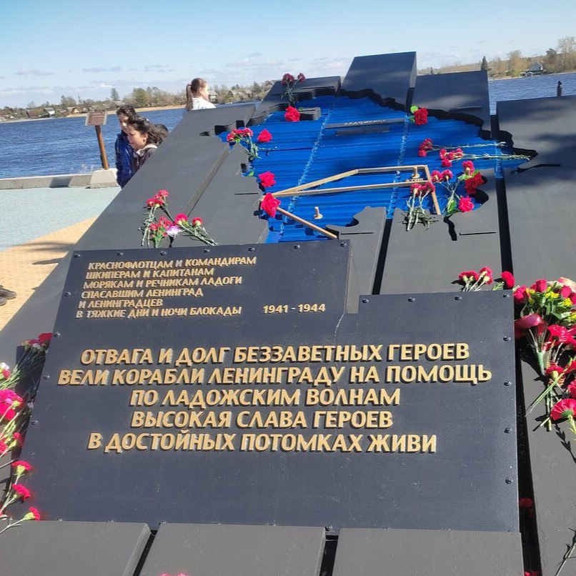 "Отвага и долг беззаветных героев вели корабли Ленинграду на помощь по ладожским волнам",