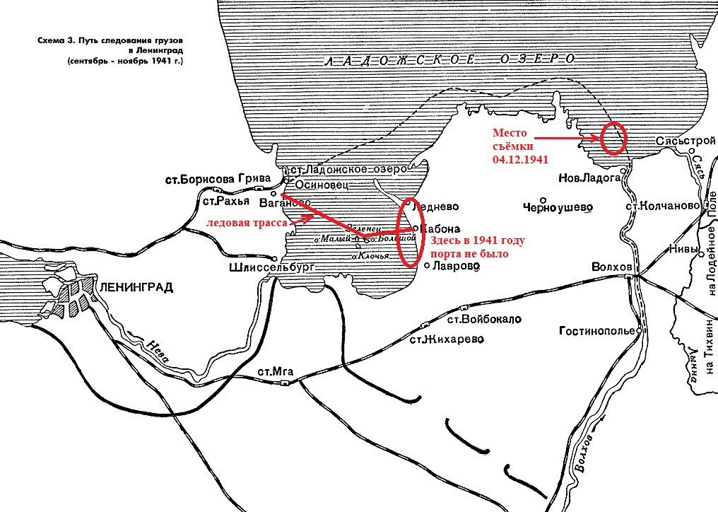 Регулярно показывая туристам знаменитые фотографии конного обоза на Ладоге, я обращал внимание на странную деталь, объяснения которой не находил. На заднем плане были видны корабли и баржи, причём некоторые ещё с дымящими трубами. Проблема была в том, что в бухте Петрокрепость, где пролегал путь ледовой Дороги Жизни, они могли оказаться только случайно. В 1941 году в Кобоне ещё не было порта - что они забыли в той бухте? Я успокоил себя объяснением, что корабли туда занесло штормами. И во всех источниках пишут1, что это ледовая трасса. Но сомнения оставались, и как оказалось, они были обоснованны. Итак, обо всём порядку.
