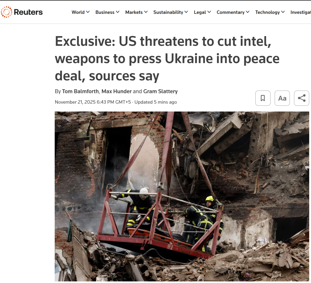 21 ноября (Reuters) — Соединённые Штаты пригрозили прекратить обмен разведданными и поставки оружия Украине, чтобы заставить её согласиться на условия мирного соглашения, заключённого при посредничестве США, сообщили два источника, знакомые с ситуацией.