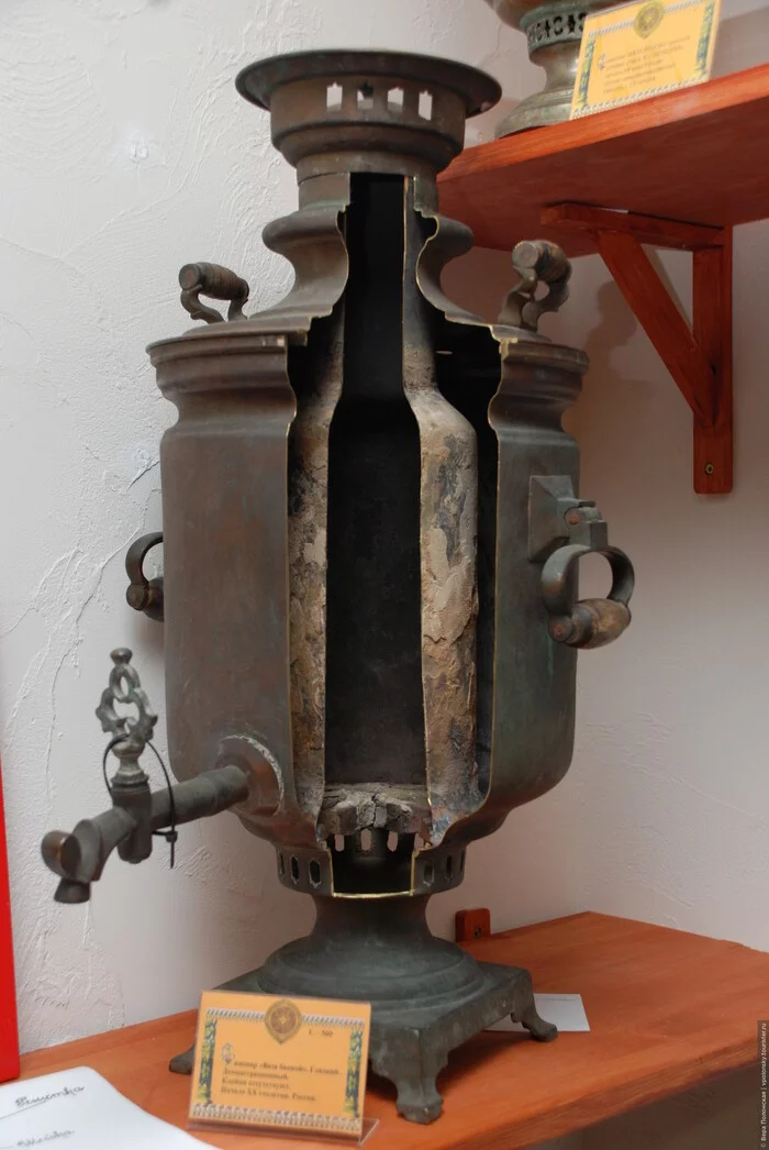 Итак, история: самовар (также, как и матрешка и гармошка) - не русское изобретение. Его аналоги были и в Древнем Риме ( аутепса ) и в Китае ( хого ), и в Европе он появился раньше, чем у нас. В России его, можно сказать довели до ума и популяризировали - слово "самовар", как "спутник" разошлось по всему миру и стало широко применяться для обозначения водогрея с внутренней топкой.