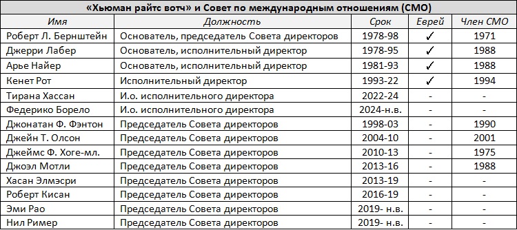 Вывод: «Хьюман Райтс Вотч» тесно связана с евреями и Советом по международным отношениям.