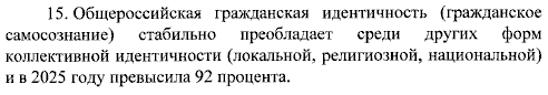 Нужно поднять уровень общероссийской гражданской идентичности к 2036 году на 3%, с 92% до 95%.