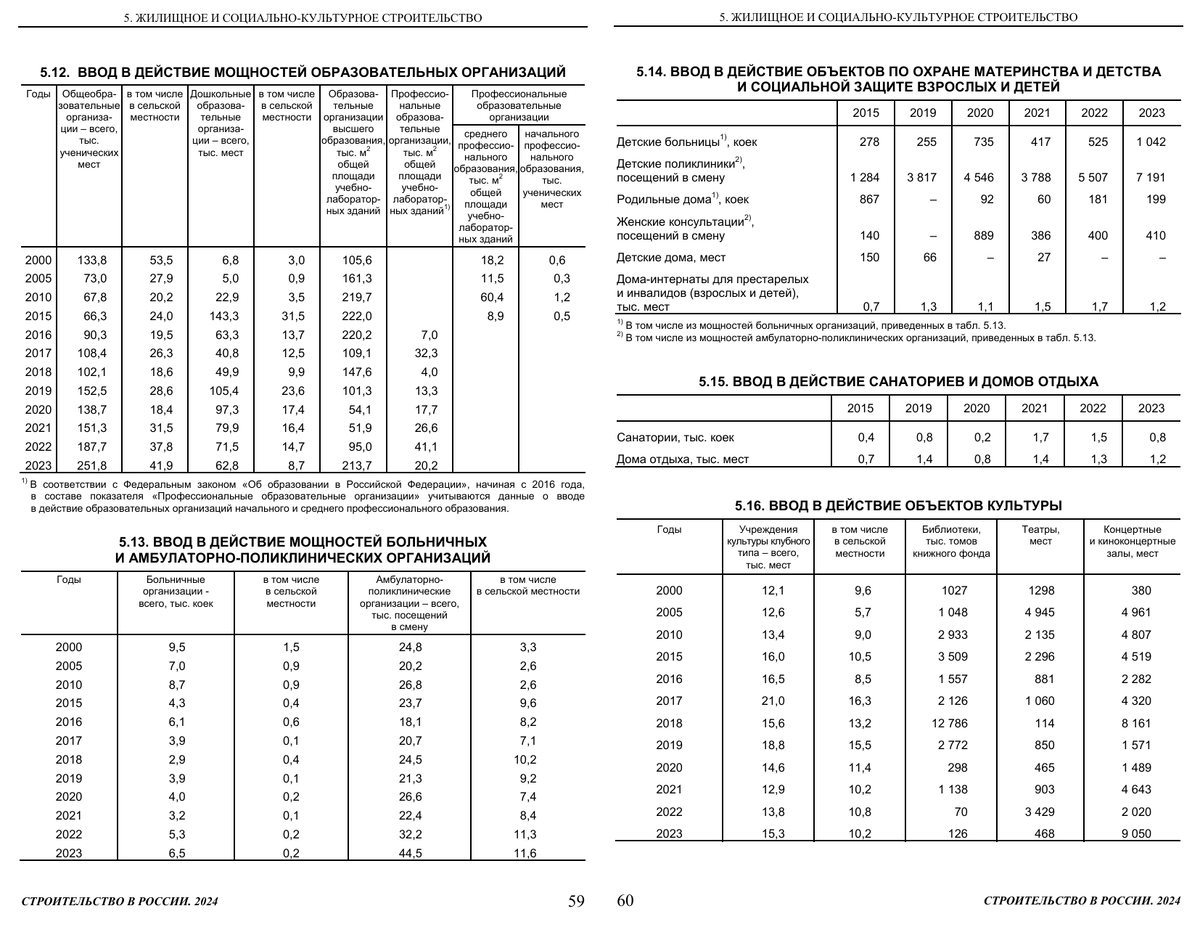 Ну, во-первых, хотелось бы вырезать немного статистики из статистического сборника «Строительство в России. 2024». Там про больницы, школы, социальную политику. Да, последние данные за 2023 год. Возможно, потом перестали. И только ракеты. Только хардкор.