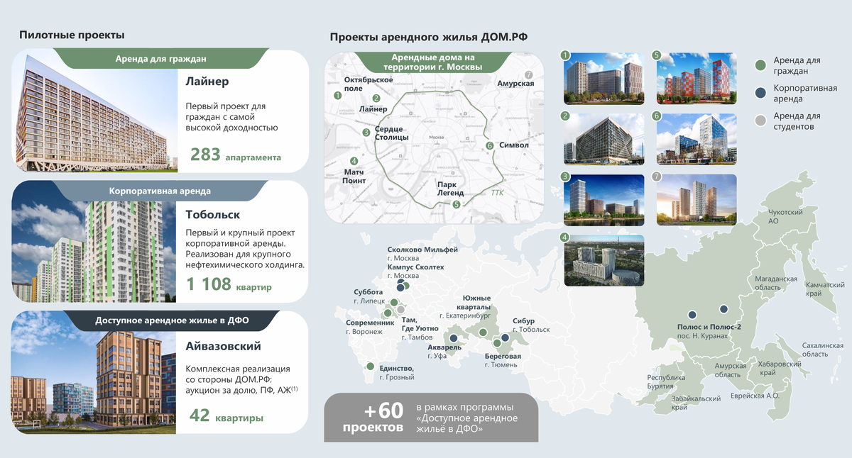 Сейчас у компании портфель квартир под аренду для граждан составляет 3,4 тыс.ед. совокупной площадью 169 тыс.кв.м. Также имеются две других программы: корпоративная аренда и дальневосточная аренда.