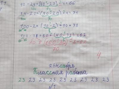 Если бы вы глянули на примеры выше, то увидели что они без замечаний и правок учителя. То есть ребёнок всё понял правильно и решил всё примеры кроме последнего по алгоритму.