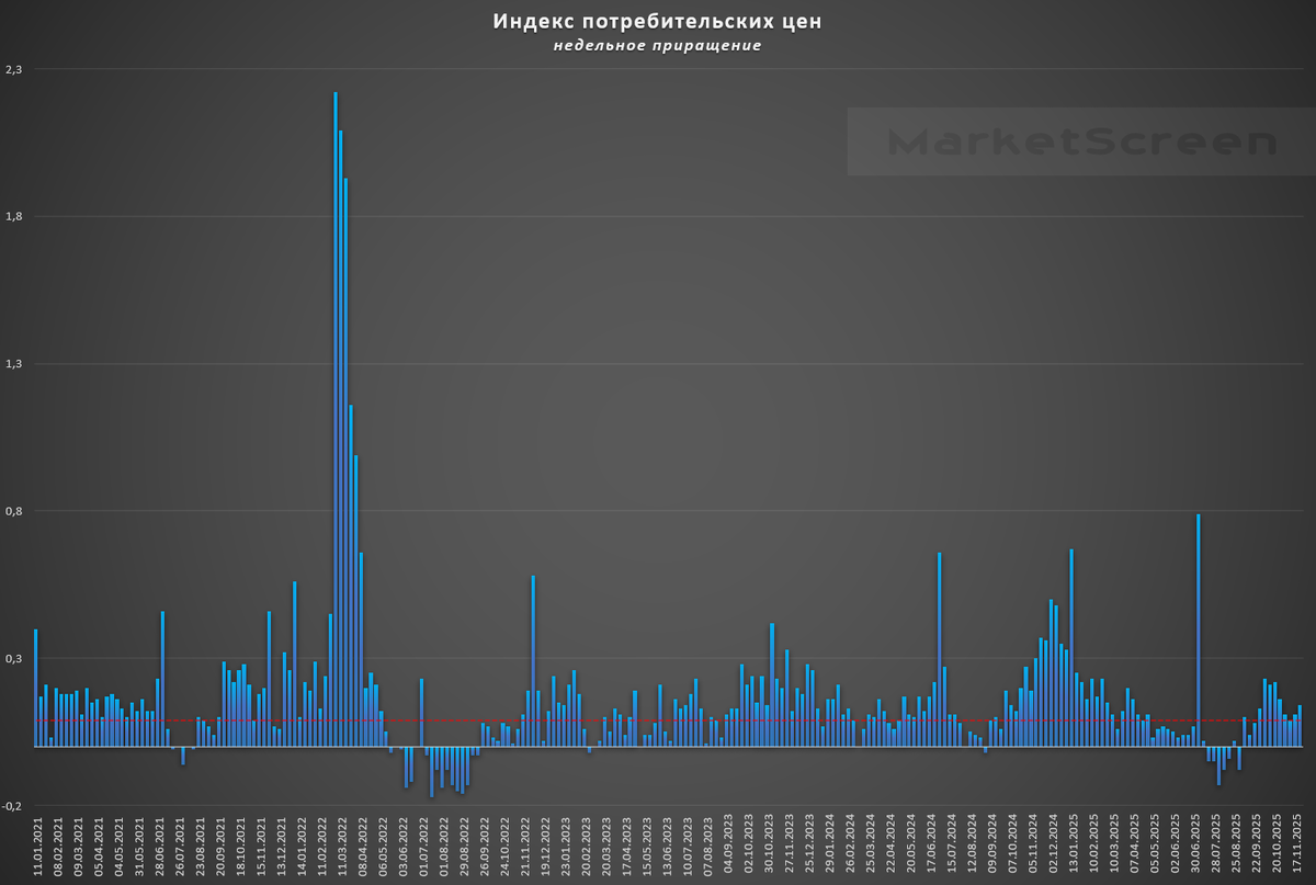 — Целевой уровень недельной инфляции: 0,08-0,09%.