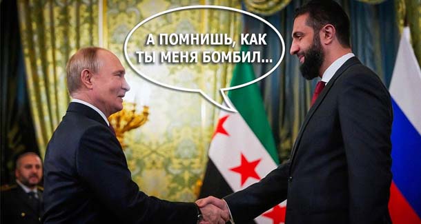 Я так понимаю, что после того как новый глава Сирии Ахмед Аш-Шараа посмотрел на всех этих гоблинов, которые руководят западными странами, то до него дошло, что от них ничего не дождешься, кроме как похлопыванию по плечу и просьбы о том, чтобы разорвать отношения с Россией. Вот и начали встречаться наши делегации то в Сирии, то в России. После чего и сам президент этой страны приехал в Москву.
