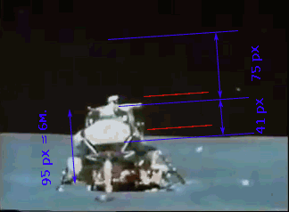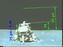 Поскольку высота лунного модуля - 75 px = 6 метров, соответственно размерность одного пиксела = 8 см/px