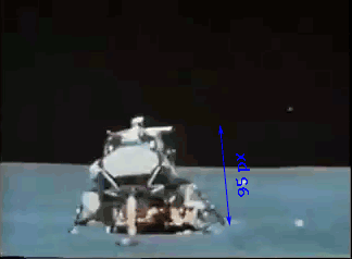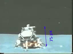 Но! При таком ускорении (1,56 м/с2 ) за первую секунду LM достигает высоты 0,78 метра (или 10 пикселей). При этом на видео такая высота достигается не за секунду, а втрое быстрее: примерно на 5-м кадре от старта (напомню, скорость видео 15 кадров в секунду).