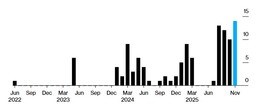 По оценкам компании Kpler, из-за атак в прошлом месяце переработка нефти в России сократилась примерно до 5 миллионов баррелей в день, «и есть риск дальнейшего снижения». Согласно более ранним данным, в конце осени страна перерабатывала от 5,3 до 5,5 миллиона баррелей в день.