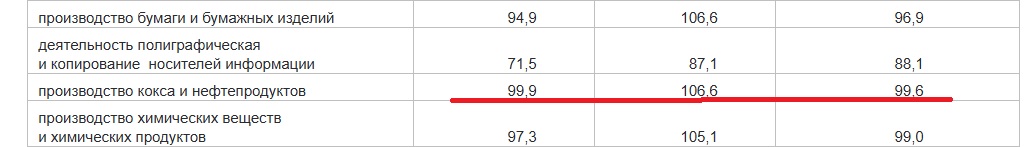 Если же посмотреть производство кокса, то выяснится, что результат потужнейших потуг ещё меньше - там падение по сравнению с прошлым годом существенное, так что по факту и год к году в нефтепереработке рост.