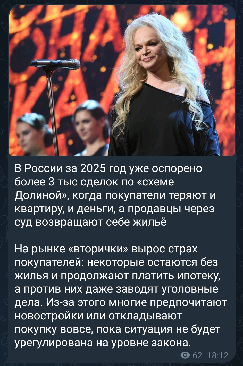 Зачем переиначивать мои слова? Мы же о схеме говорим.. является ли Долина пострадавшей в этой схеме или нет - это второй вопрос. То, что она изобразила из себя жертву - это всем понятно. Если она пострадала в следствии собственных действий, то это её судьба должна зависеть от того найдут или нет мошенников, которые её развели. В действиях покупателей её квартиры мошеннические мотивы разве присутствуют?
