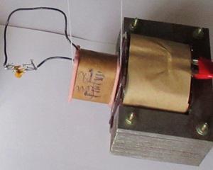 В качестве генератора электромагнитного поля я использовал деталь от старого устройства размагничивания магнитофонных лент (она выглядит как дроссель или трансформатор, у которого с одного бока отсутствует магнитопровод).