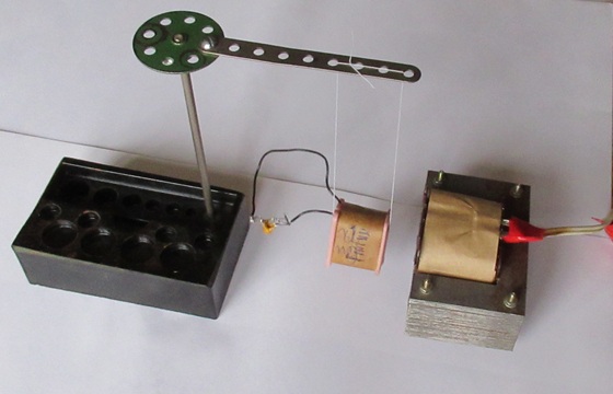 Рисунок 2. Результат включения питания: катушка притягивается к магнитопроводу генератора поля