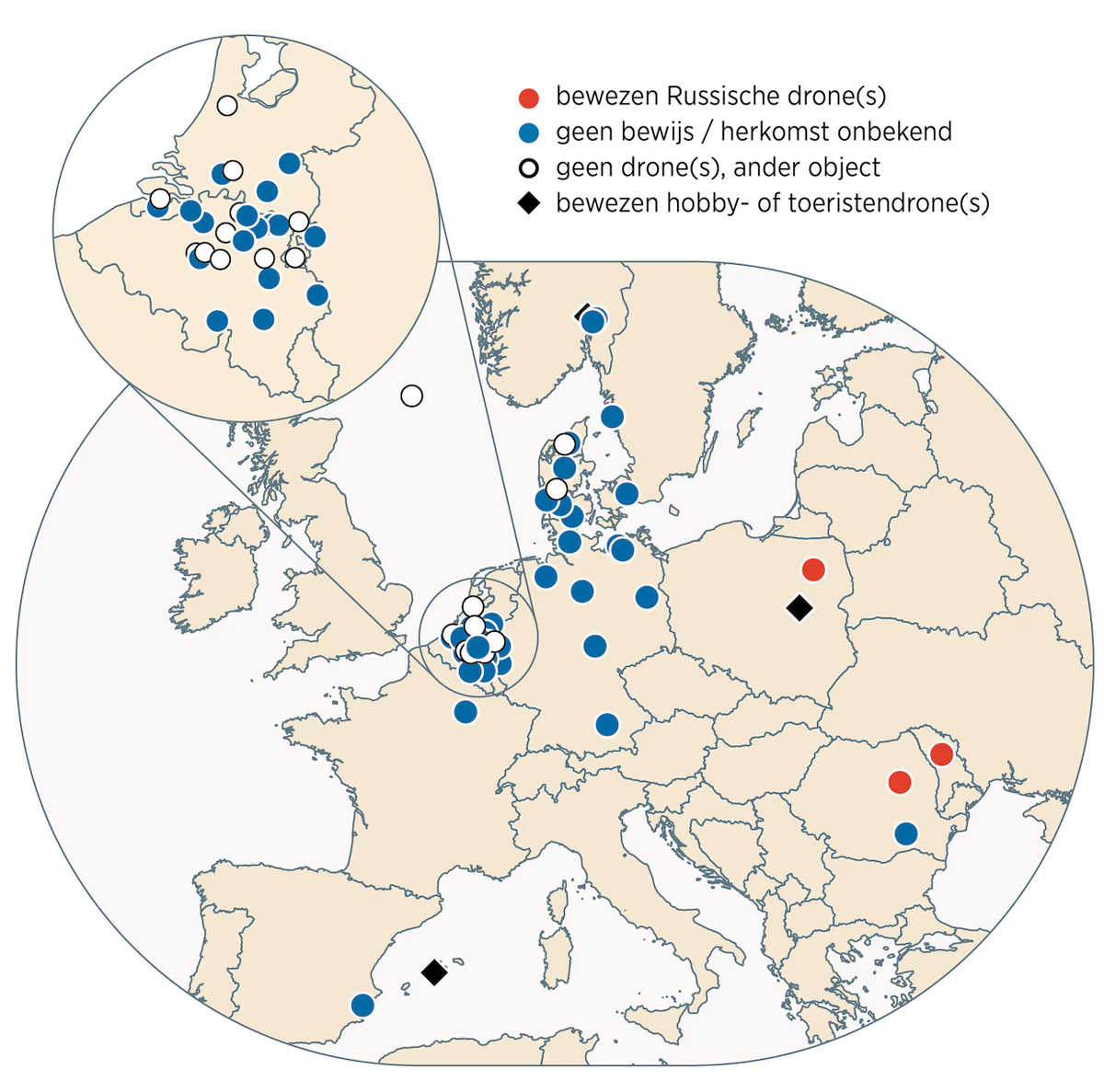 Голландский журнал Trouw проанализировал 60 инцидентов с беспилотниками по всей Европе и обнаружил, что не обнаружил каких-либо доказательств причастности России.