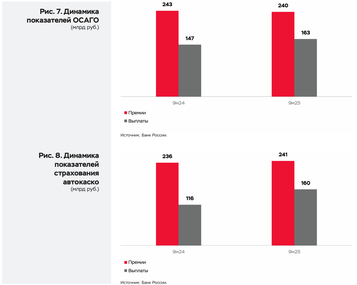 Средняя премия по полисам ОСАГО снизилась за год до 6,8 тыс.₽ (на 4,1%). Средняя страховая выплата выросла до 103,8 тыс.₽, а по классическому полису личные цели, не такси) ОСАГО до 113 тыс.₽, что на 16,8% выше, чем год назад.